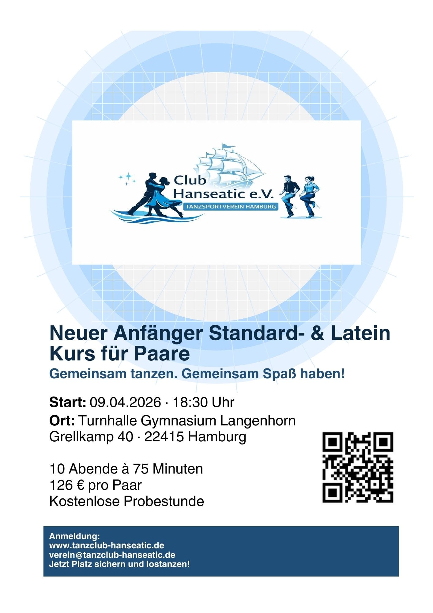 Wir tanzen seit über 60 Jahren in Langenhorn, also im Norden von Hamburg und in unmittelbarer Nähe zu Norderstedt.